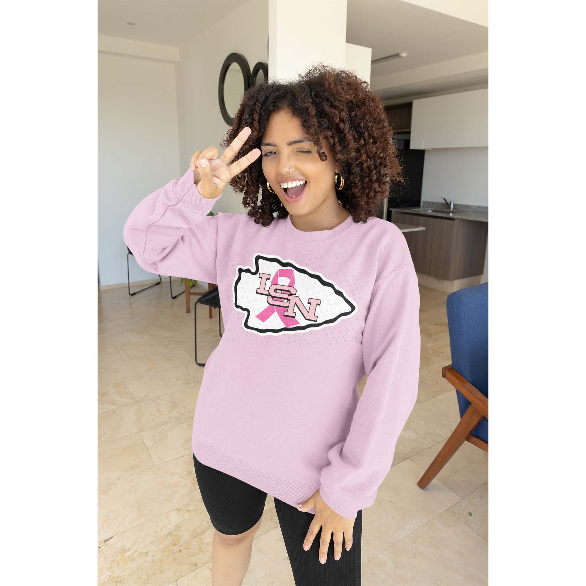 Grab the LSN Chiefs Breast Cancer logo on a comfy light pink T-Shirt, Crewneck & Hoodie.